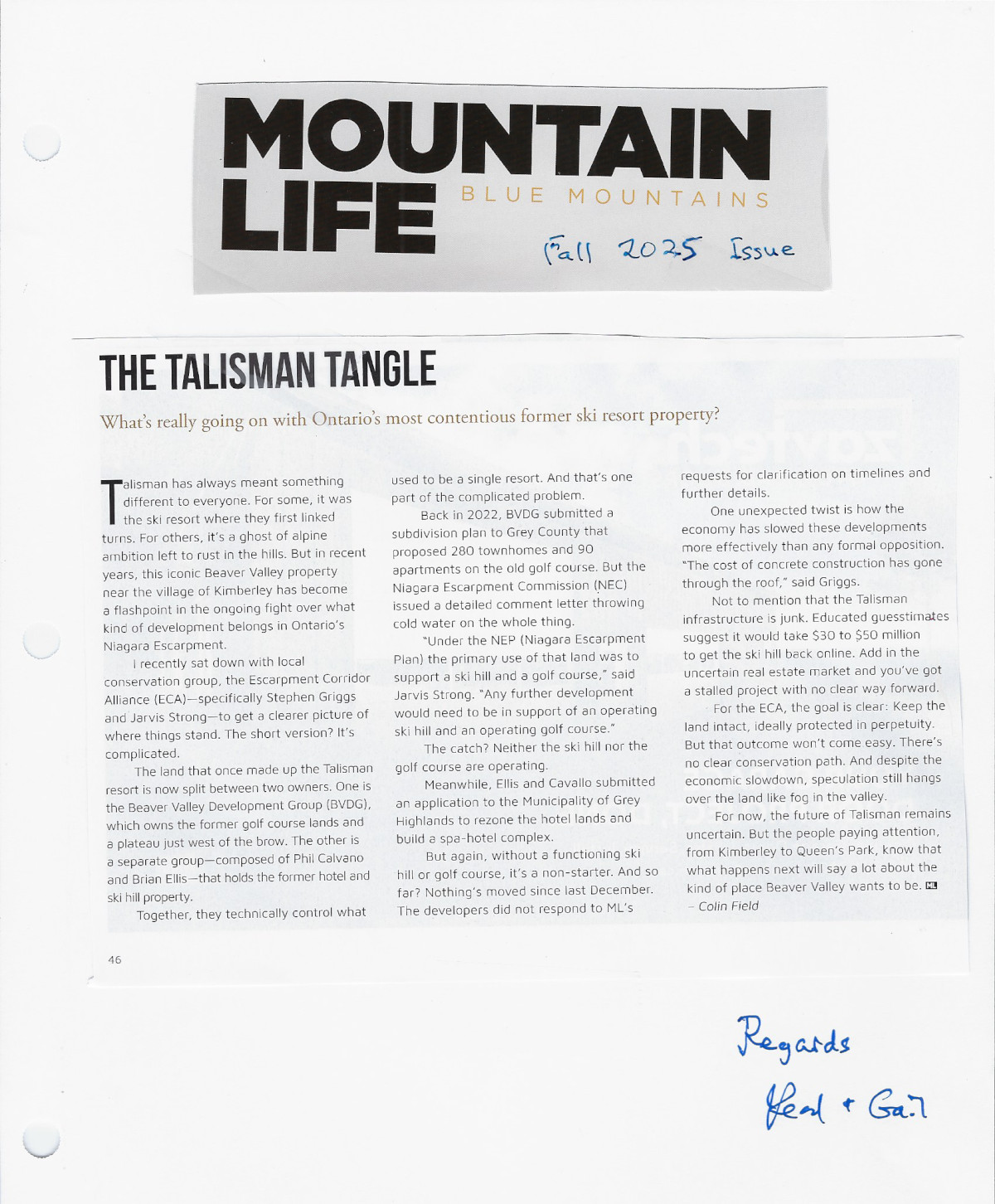 - June 5, 2024 - Bruce Harbinson, President of Escarpment Corridor Alliance Interview, on Talisman Development